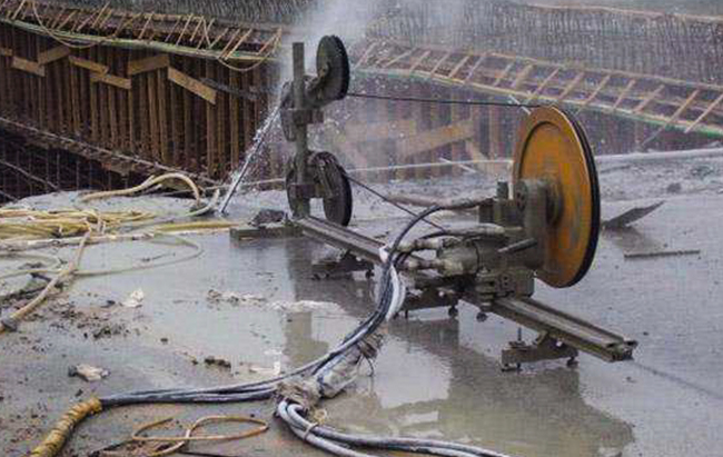 混凝土切開是指選用液壓墻鋸機、電動碟鋸機、水鉆或許馬路切開機等東西對混凝土構件、墻體、路面等進行切開的施工技能,它具有切開才能強,靜力無損,功率高,選用水冷卻,無施工粉塵等特色 :切開撤除:繩鋸切開是金剛石繩子在液壓馬達驅動下繞被切開物高速跋涉研磨然后完結切開作業(yè)。  運用繩鋸設備對混凝土切開拆 除···